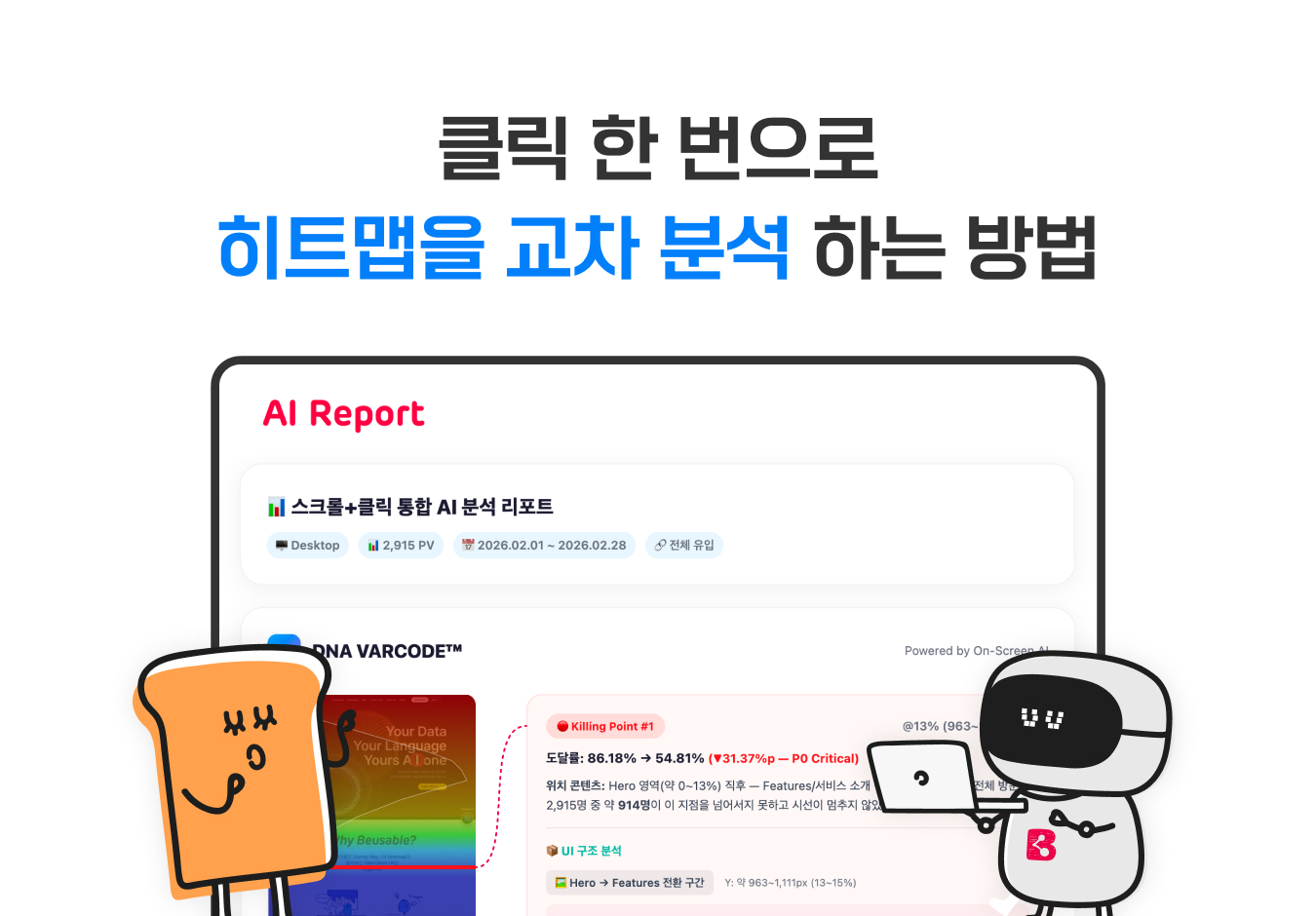 상품 또는 마케팅 띠배너의 클릭수를 스크롤 도달률과 함께 측정하여 콘텐츠에 노출된 콘텐츠의 실제 전환 효율을 파악해야 함(노출 대비 전환 효율).