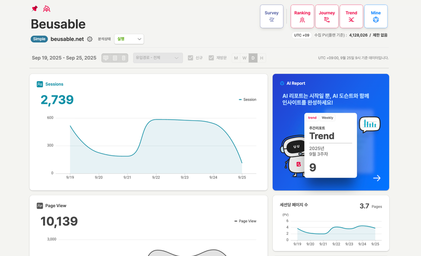 또, 랭킹 리포트를 활용해 동종 업계 데이터를 기준으로 우리 사이트의 데이터가 어떤지 참고해 볼 수 있습니다.