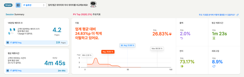 이때, 세션당 페이지 수를 통해 주요 페이지가 노출되어야 하는 적절한 시점을 설계해 볼 수 있어요.