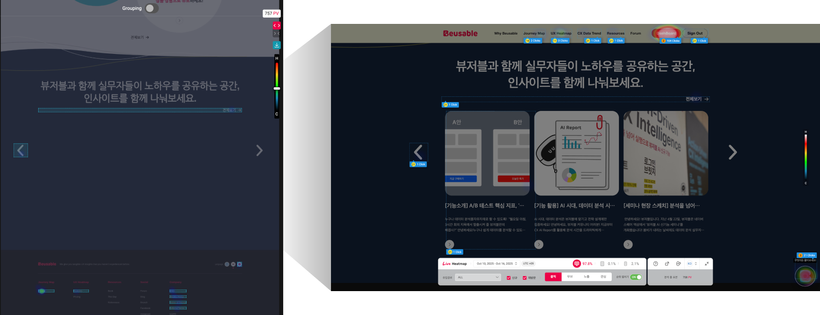 뷰저블은 ‘Journey Map’, ‘UX Heatmap’의 두가지 서비스를 제공하고 있어요.