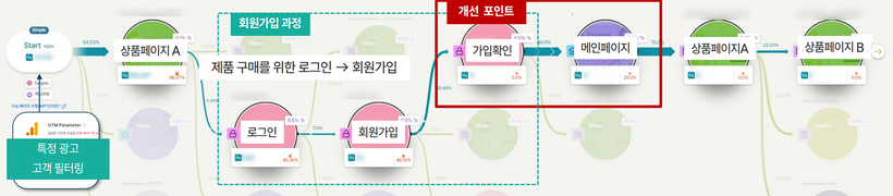 다음은 광고 유입 사용자의 회원가입 여정을 분석한 사례입니다.