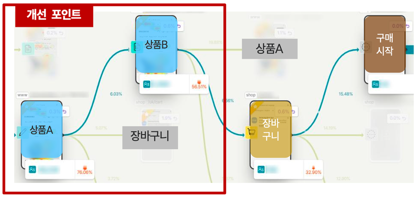 저니맵을 통해 상품 A를 보던 사용자가 상품 B로 이동해서 구매를 시작한다는 점을 발견하셨다고 해요.