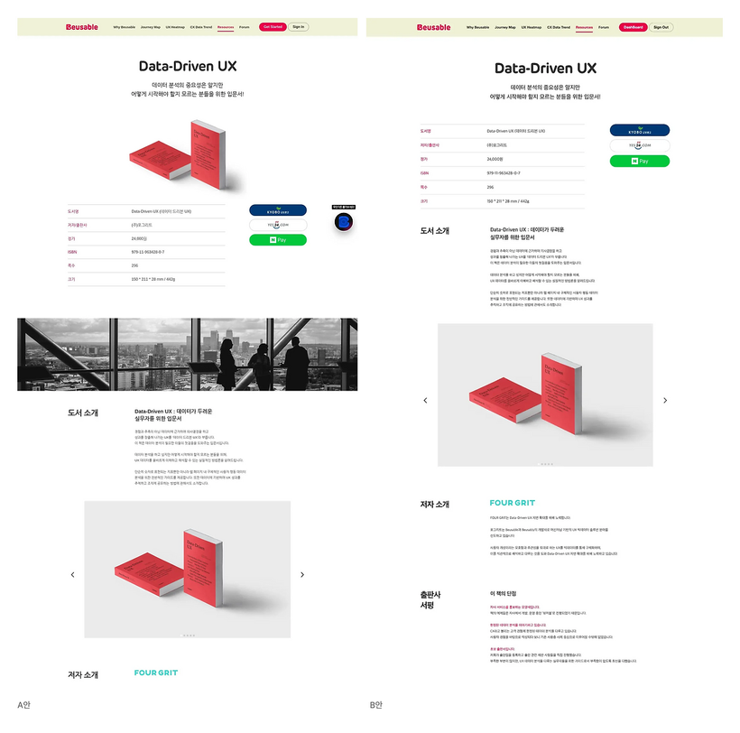 UX 디자이너가 된 지 어느덧 3개월 차. 드디어 제게 첫 업무가 주어졌습니다. 바로 도서 ‘Data Driven UX’를 소개하는 페이지를 대상으로 A/B 테스트를 진행하는 업무였어요.