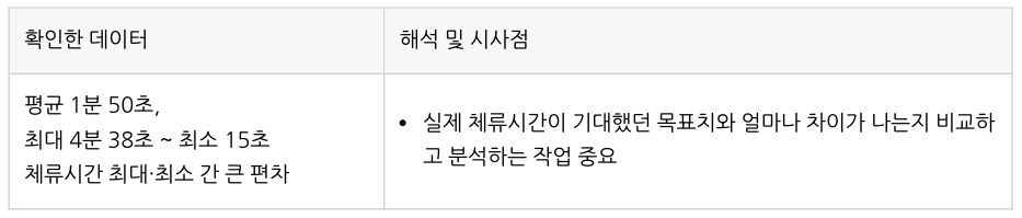 일반적으로 체류시간이 길면 콘텐츠에 대한 흥미와 몰입도가 높다고 해석하고, 짧으면 정보가 부족하거나 사용자의 이목을 끌지 못했다고 볼 수 있습니다.
