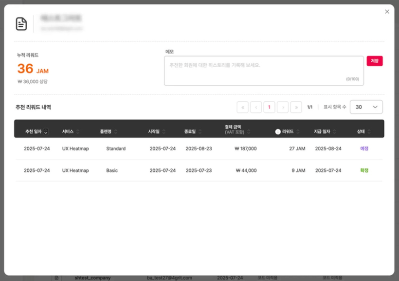 단, 피추천인의 결제와 동시에 리워드가 지급되지는 않아요. 피추천인의 유료플랜이 종료된 이후, 해당 플랜의 결제가 확인된 경우 지급이 확정됩니다.