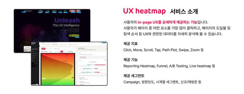 뷰저블을 구성하는 UX Heatmap과 Journey Map 두 가지의 핵심 서비스를 소개합니다.