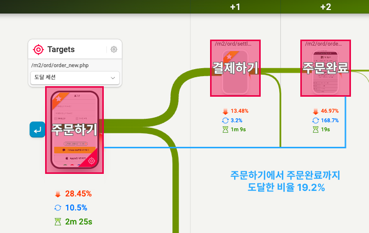 Targets 기능으로 [주문하기] 페이지를 목표 페이지로 설정한 뒤, Marketing 기능을 활용해