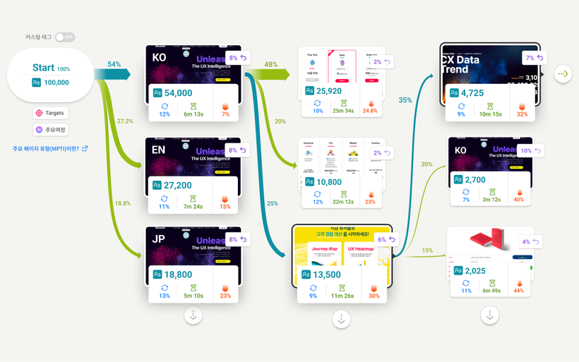 예를 들어, 같은 목적/기능의 페이지이지만 국가별로 URL이 다른 페이지들이나, 같은 상세 페이지임에도 URL이 달라 고객 여정이 분산된 경우에는 기존의 Journey Map 방식으로 이를 분석하는 데 어려움이 있었을 텐데요.
