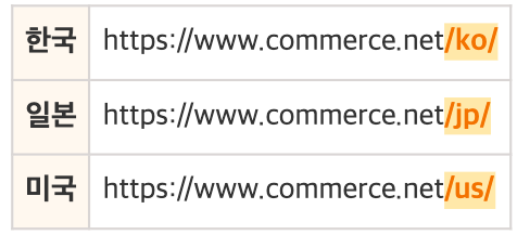 - • 페이지 : 국가별 메인 페이지 (Home)
