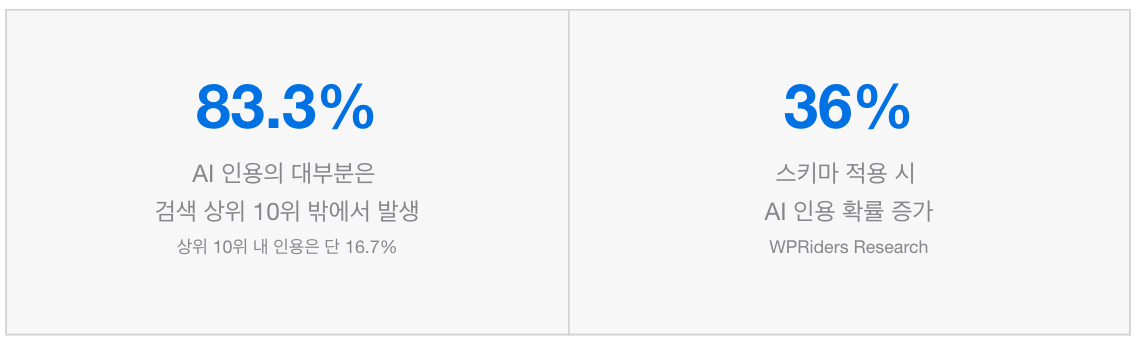 AI 인용 출처의 83%는 검색 10위 밖에서 나옵니다. SEO 1등이 아니어도 AI에게 선택받는 비결.