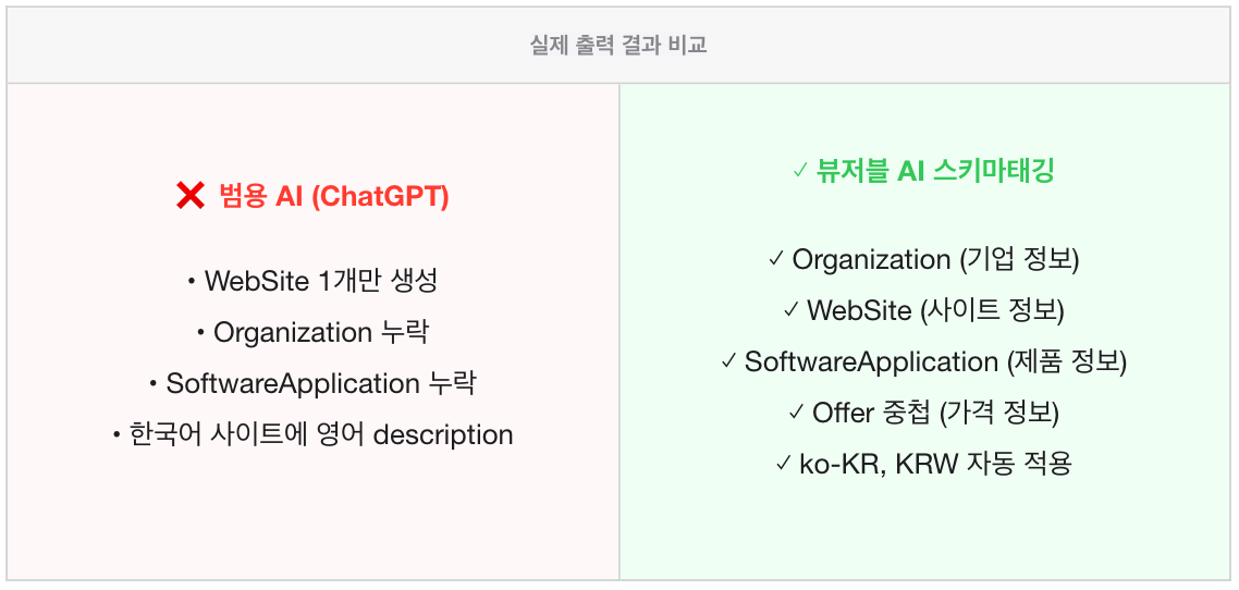 범용 AI는 “스키마가 뭔지”는 알지만, “이 사이트에 어떤 스키마가 필요한지”는 모릅니다.