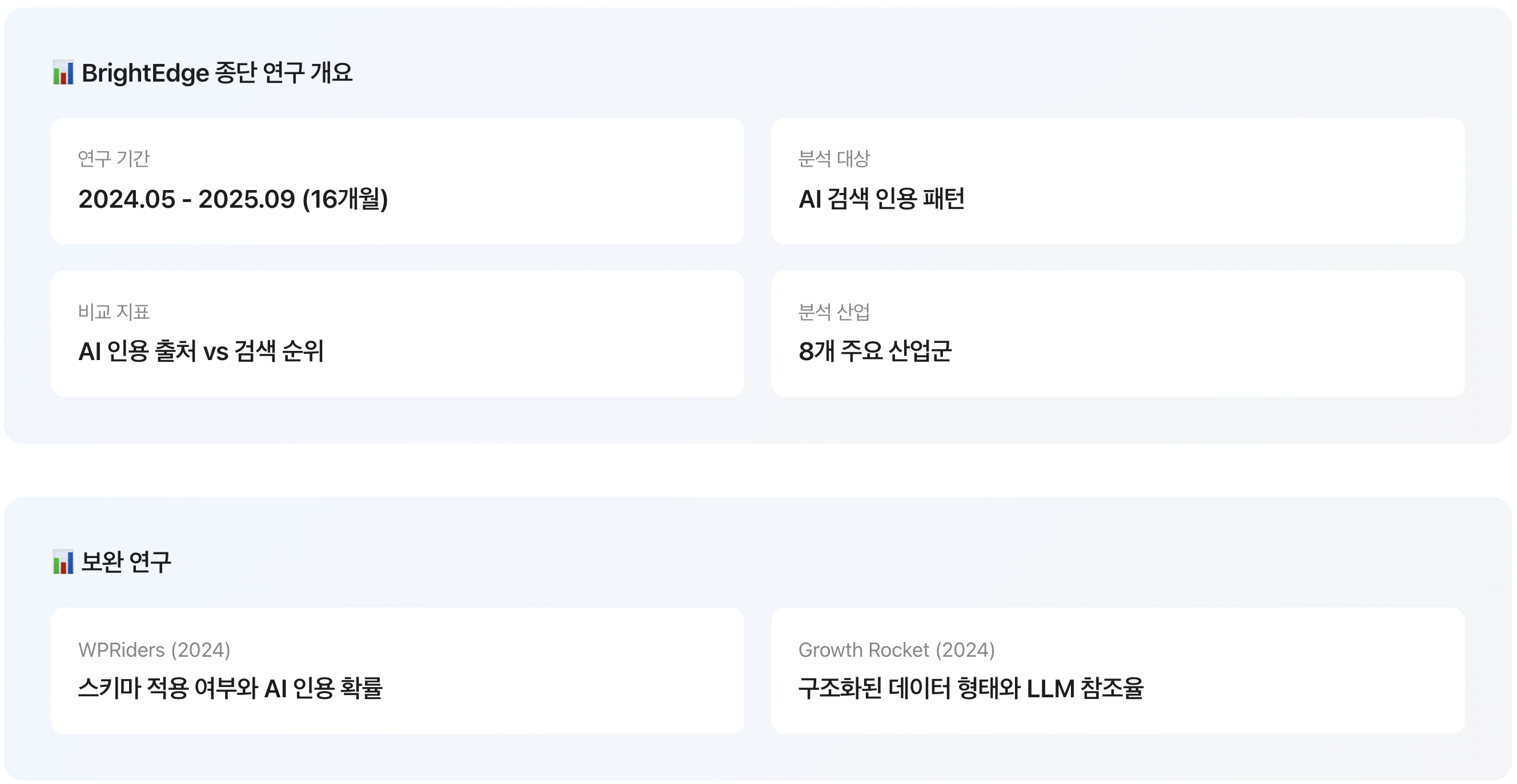 본 분석은 BrightEdge의 16개월 종단 연구 데이터를 중심으로, WPRiders와 Growth Rocket의 보완 연구를 함께 검토한다.