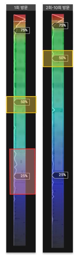 ③ 방문 빈도에 따른 스크롤 히트맵 비교
