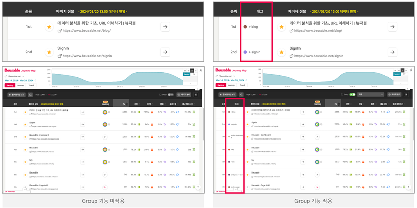 ▶[기능 활용] #2 여정 내에서 한눈에 패턴 확인하자! “Group” 기능 활용편: