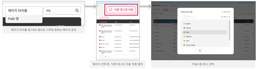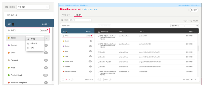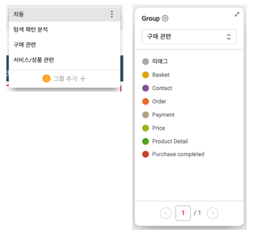 구매와 관련된 페이지를 선정하여 태그를 추가하고 그루핑합니다.