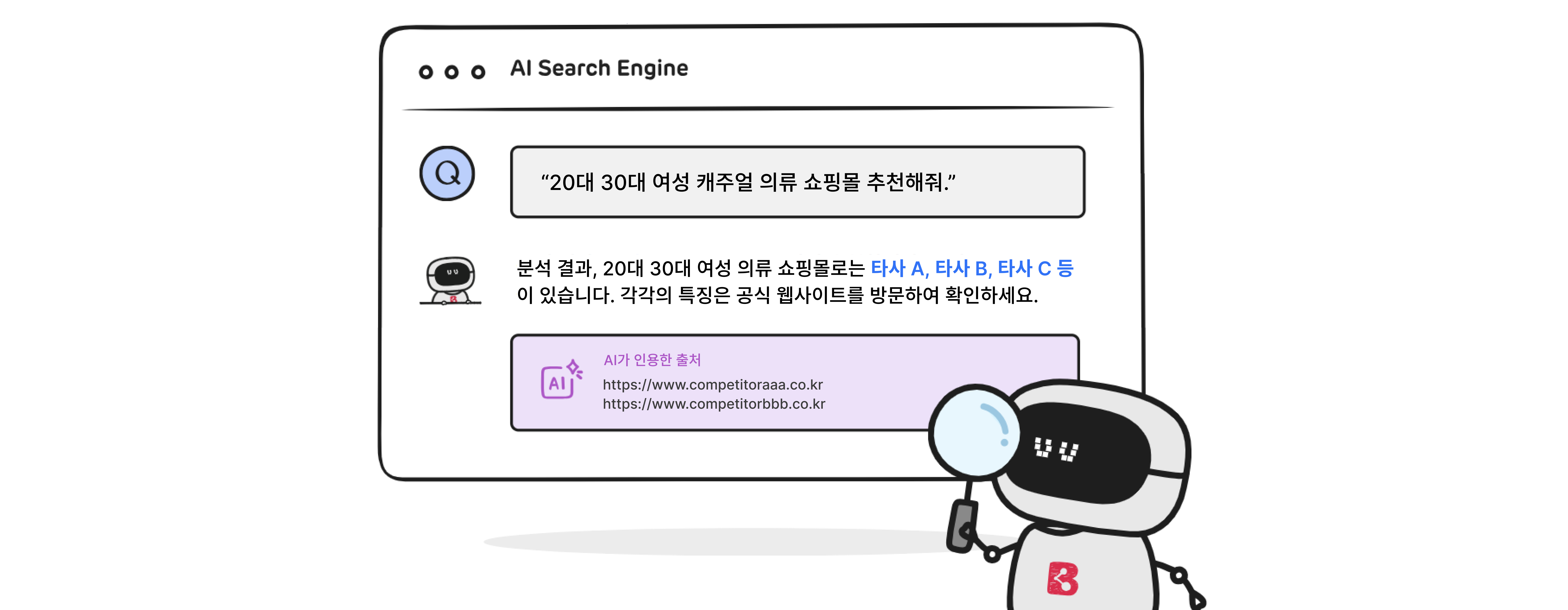 AI가 답변을 생성할 때 특정 기업을 인용한다면 어떻게 될까요? 해당 기업은 브랜드 가시성이 높아짐과 동시에 검색 시장에서 경쟁 우위를 확보하게 됩니다. 따라서 AI가 자사 정보를 정확히 학습하여 답변에 반영하도록 최적화하는 과정이 필요합니다. 이러한 전략을 GEO(Generative Engine Optimization)라고 합니다.