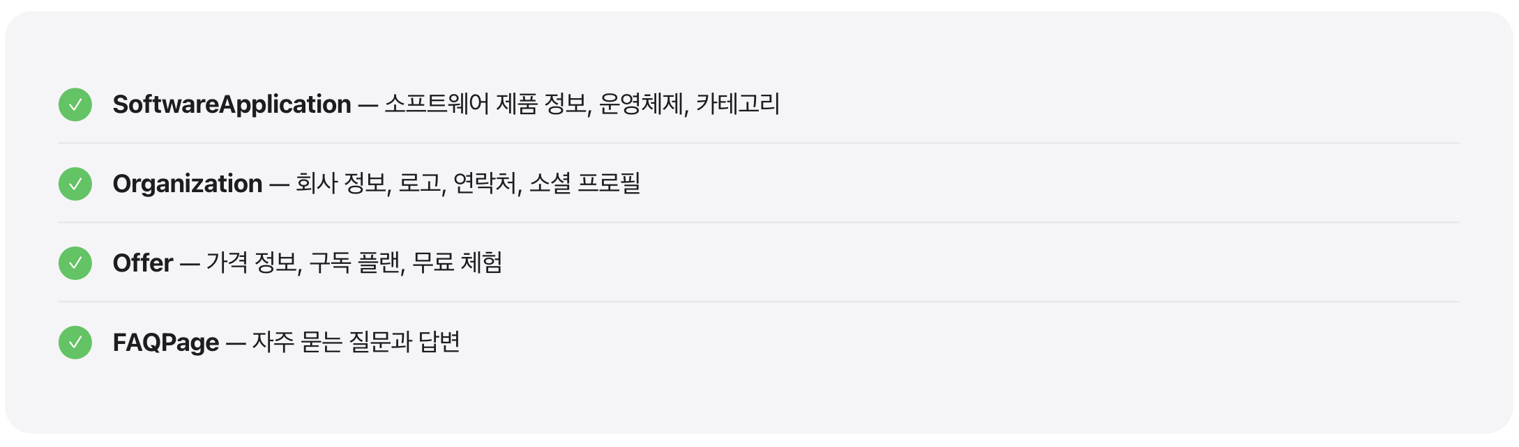 모든 페이지에 모든 스키마를 적용할 필요는 없습니다. 페이지의 목적에 맞는 스키마를 선택하는 것이 중요합니다.