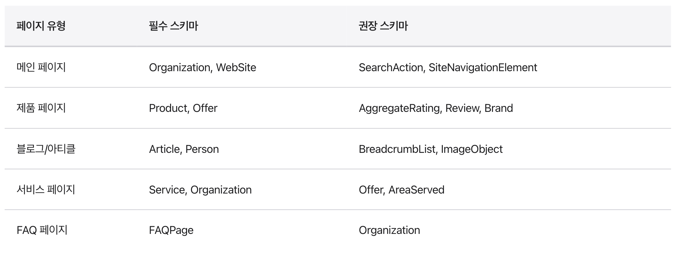 6.1 페이지 유형별 필수 스키마