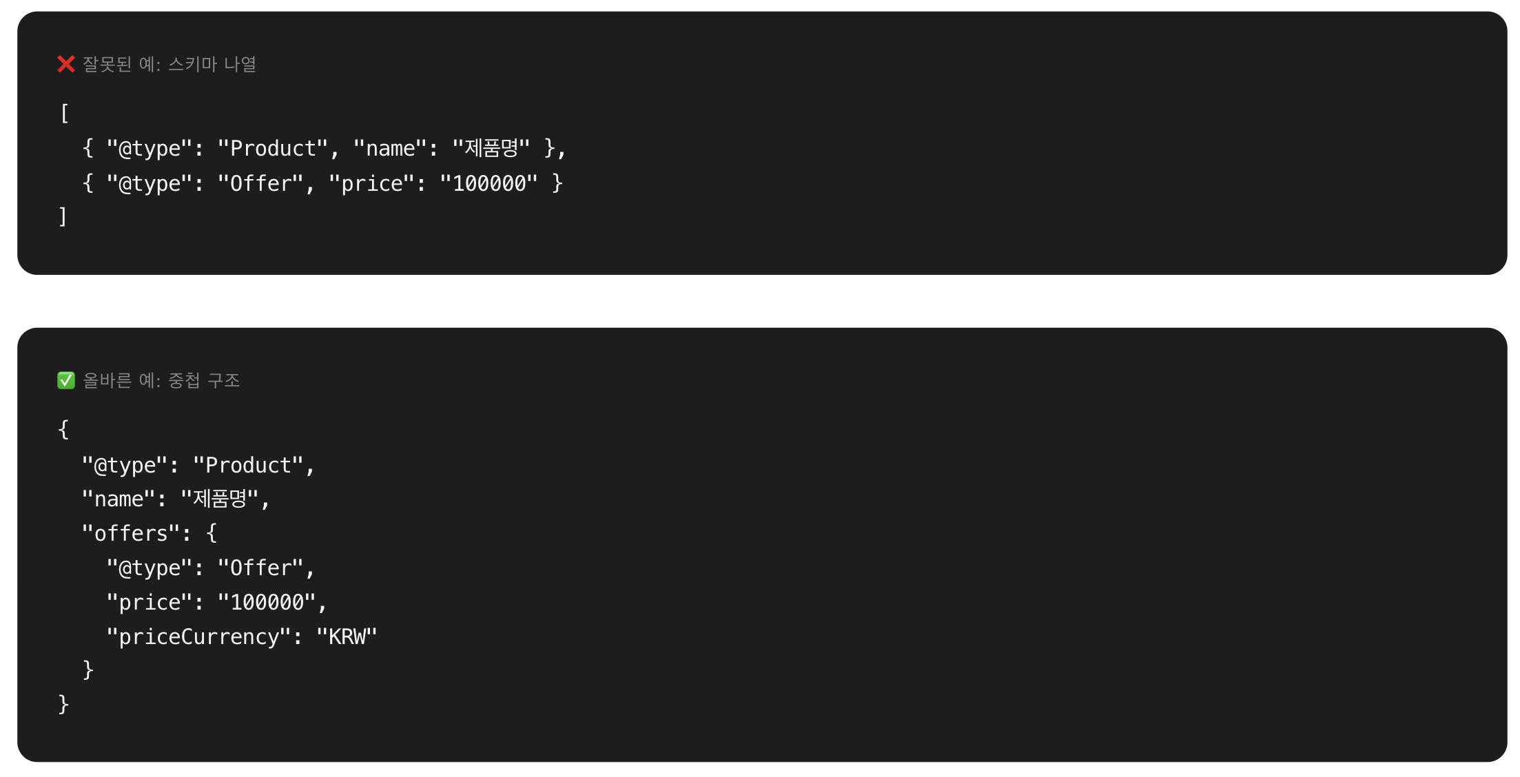 Google은 중첩 구조를 강력히 권장하며, 이는 AI가 정보 간의 관계를 더 명확히 이해할 수 있게 합니다.