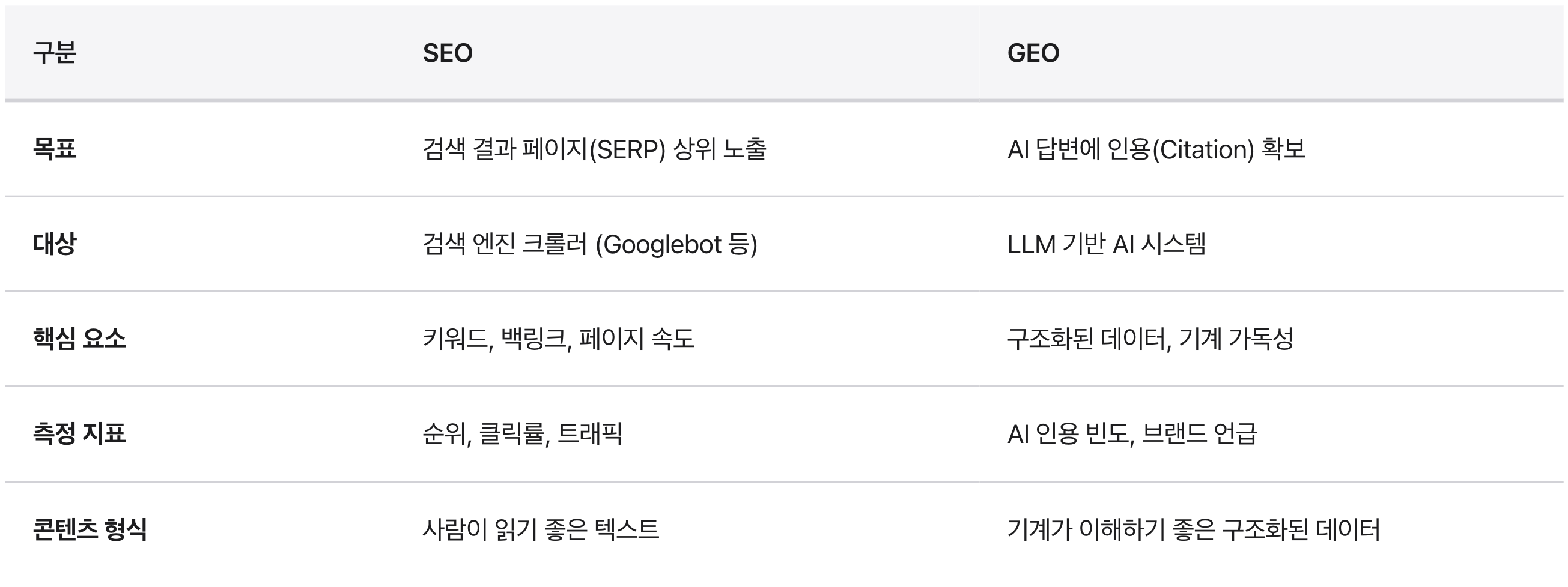 SEO vs GEO: 근본적 차이