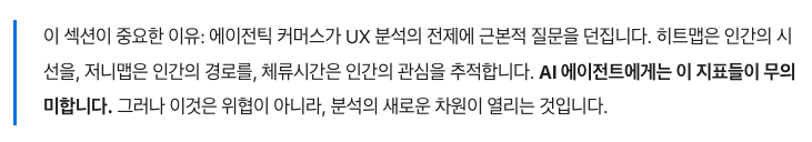 이것은 Beusable에 위협이 아니라 분석의 새로운 차원입니다. “기계가 읽는 웹사이트”를 최적화하려면, 기계가 어떤 데이터를 어떻게 추출하는지를 분석하는 도구가 필요합니다. 인간의 클릭 패턴과 에이전트의 데이터 접근 패턴을 동시에 추적하는 것 — 이것이 2026년 이후의 핵심 과제입니다.