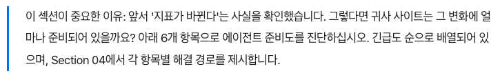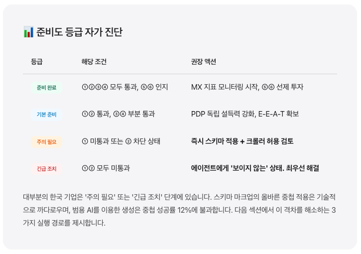 현재 사이트가 AI 에이전트 시대에 얼마나 준비되어 있는지 — 6개 항목 자가 진단