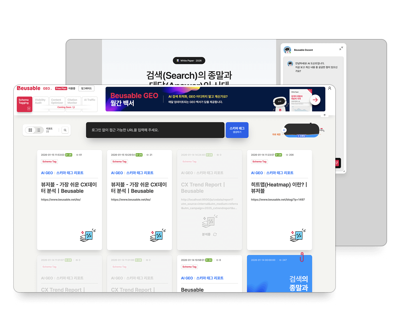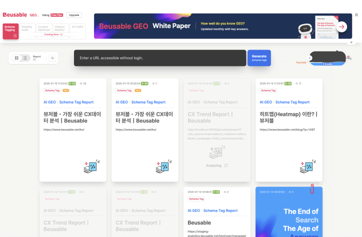 GEO expert takes 2 weeks to set up schemas for 1,000 pages. Beusable completes it instantly with one click. Expert-level results, without experts, faster. Make AI cite your site.