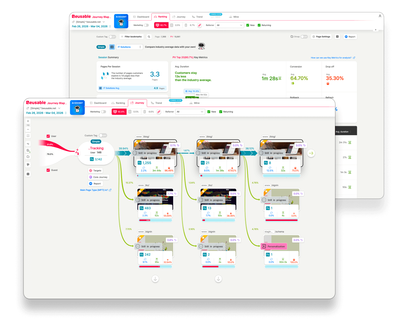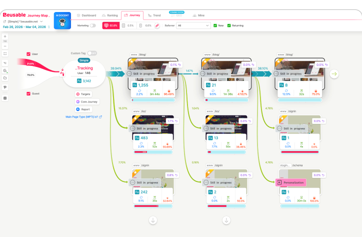 UX Heatmap clearly shows which areas get the most clicks, supporting data-driven decision-making. With Journey Map, anyone can easily understand the customer journey without expertise, and referral source analysis for promotion pages makes it even more valuable.