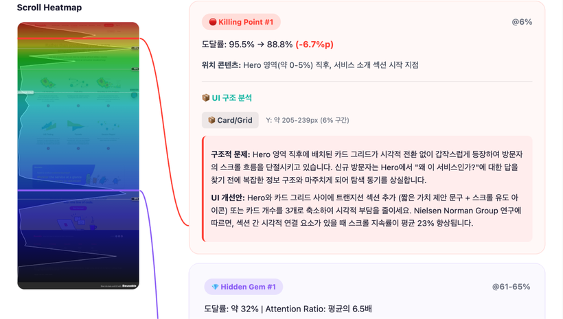 안녕하세요! 뷰저블입니다. “히트맵 데이터는 있는데, 이게 좋은건가요? 나쁜건가요?” — ▵▵ PM“히트맵 캡처하고, 정리하고… 보고서 쓰는데 반나절이 걸려요." — ㅇㅇ 마케터히트맵 데이터, 어떻게 써야 할지 막막했던 적 있으신가요?또, 분석 결과를 정리하는데 한참 걸려서 고민이셨죠? 데이터 분석 시간을 90%